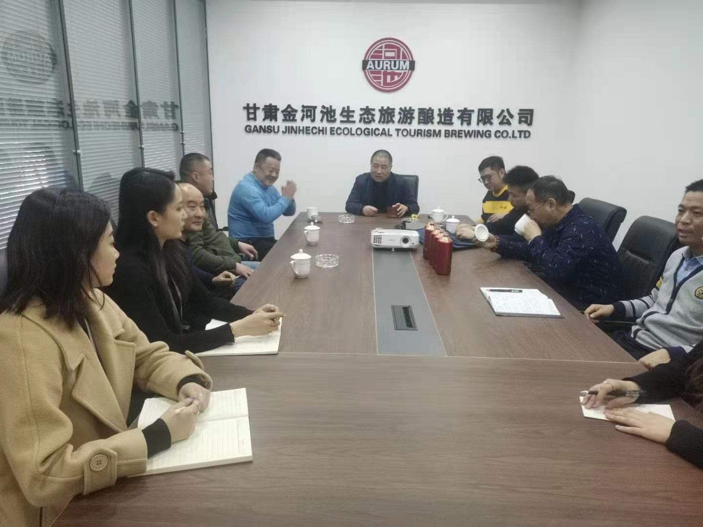 杨江涛董事长在会议室和同类企业负责人就技术合作进行了洽谈